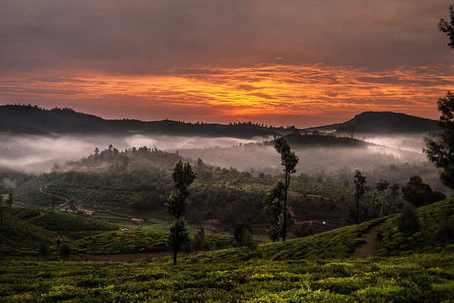 A 4AM start and a drive down the valley let me capture this amazing frame, with the sun just about to rise, the tea estate and the rising mist!
